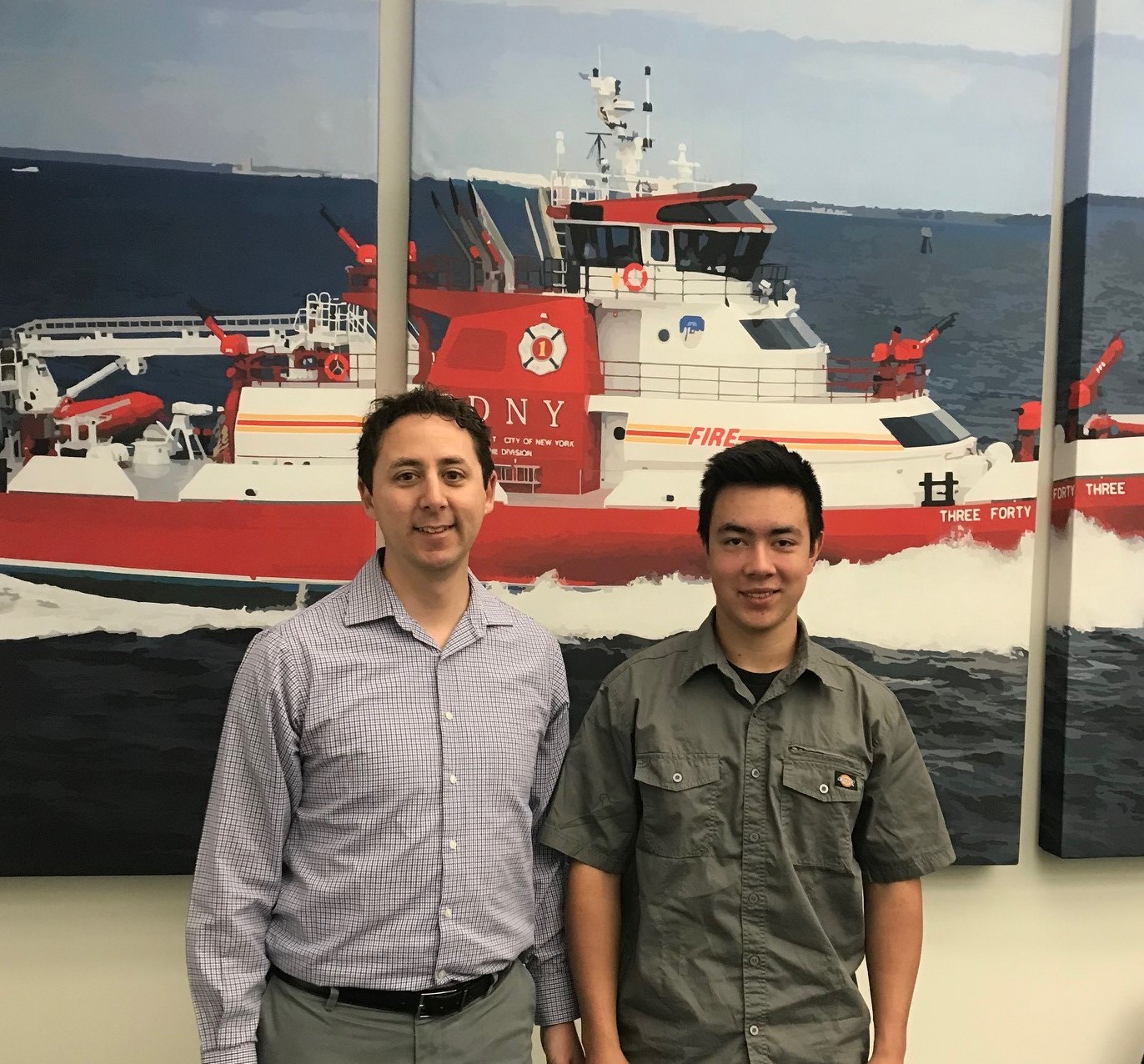Erik Johnstone, a Chatelech Secondary Graduate, spent the day with Myles Davis, a grade 10 Chatelech Secondary Student, at his work on ‘Take Your Kids to Work Day’. Erik works in Vancouver as a Project Manager/ Mechanical Engineer at Robert Allan Ltd. (Naval Architects and Marine Engineers). Myles said there was lots of information to take in and that he really liked seeing the whole design process from the idea to a finished product. They had a few of their ship designs available as a Virtual Reality model where people can explore the vessel and get a real sense of scale. What an opportunity!