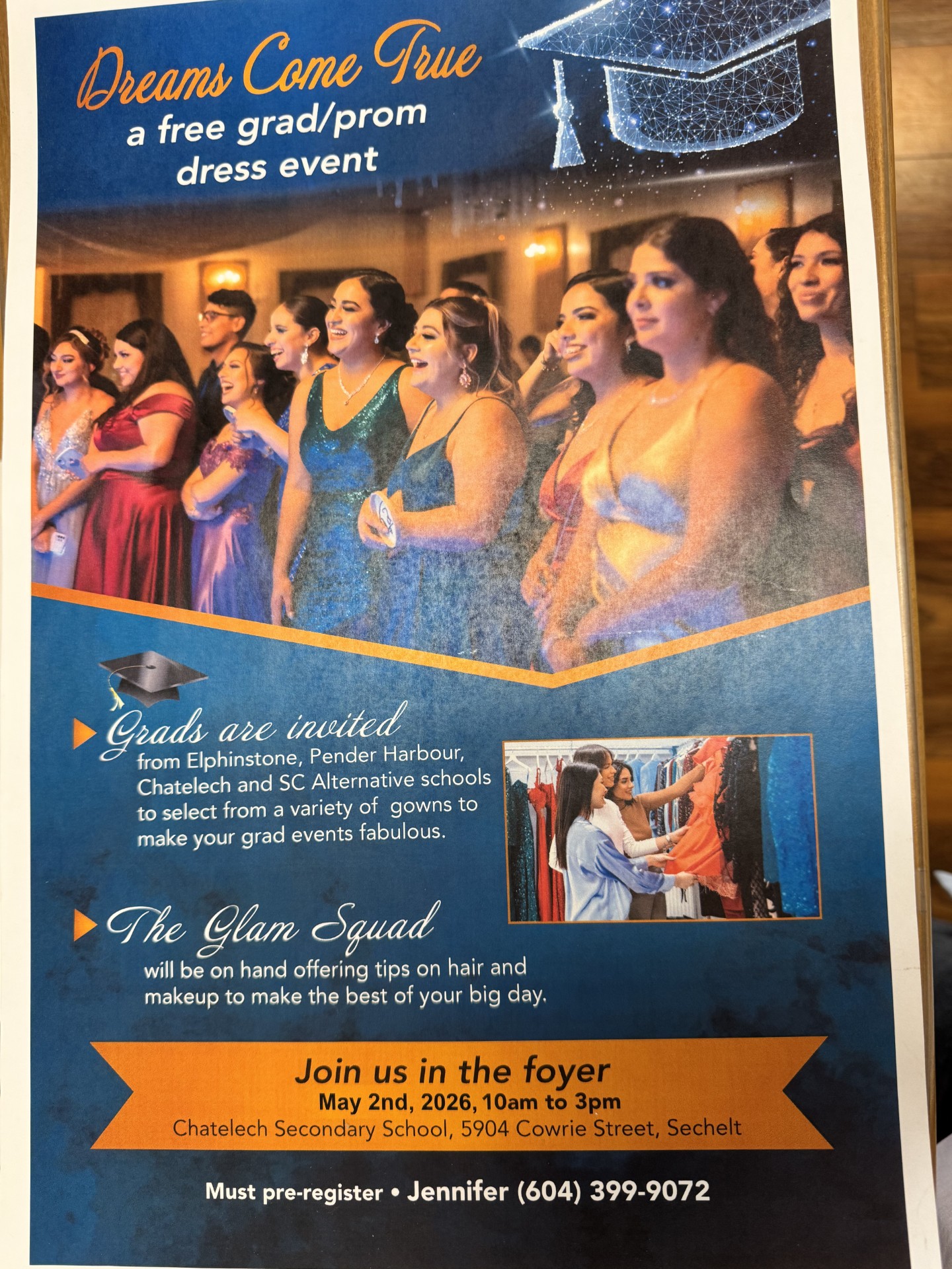 - Dreams Come True: A free grad/prom dress event. Chatelech Secondary, May 2nd, 20 am – 3 pm